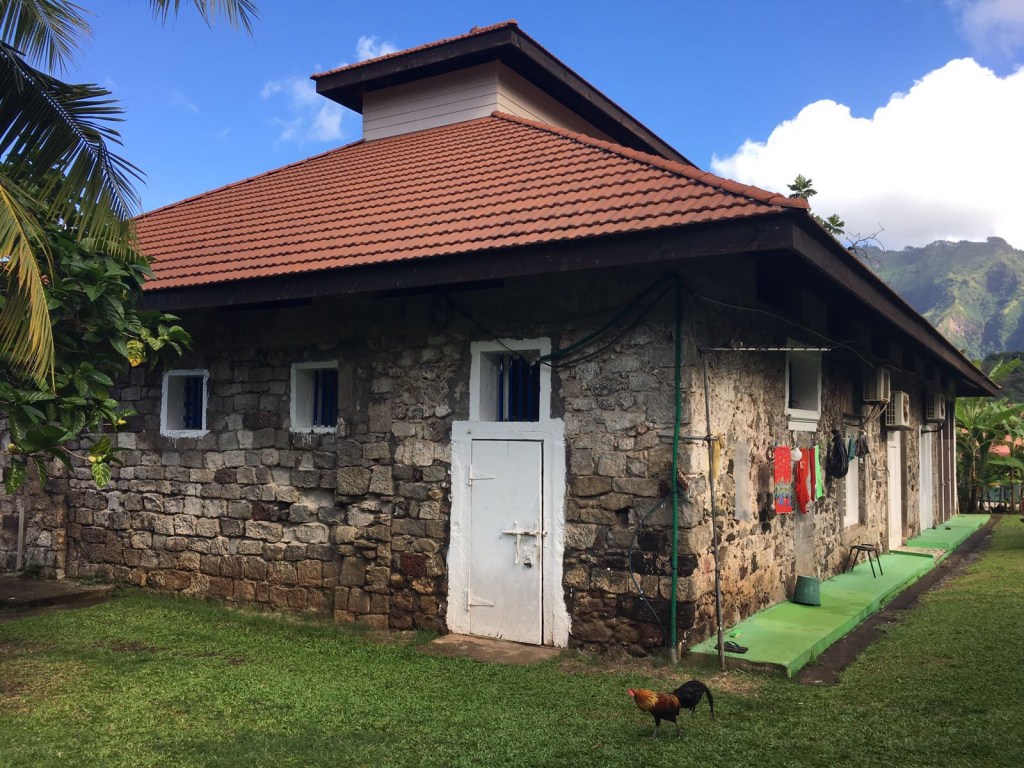 Just a stone’s throw from the black sandy beach and the fishermen’s market is an austere building made of gray stones, about ten meters long, without a floor, with painted blue doors. The only thing is that their locks do not open from the inside. It is the prison of Nuku Hiva, which has alternatively been, since its construction in 1873, a private house, barracks, church.